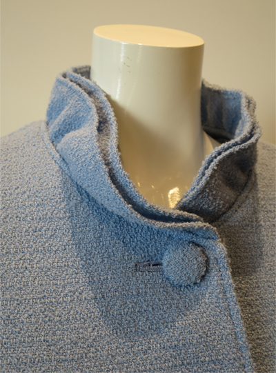 仕上げました。見短め丈のジャケットは七分袖、二重にしたフリルカラーと大きな