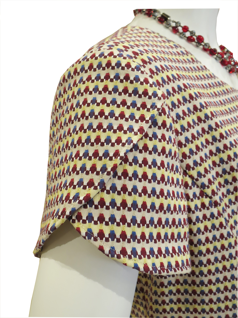 作製した初秋にも着ていただけるワンピースご紹介します。細番手のソフトな糸で織られたジャカード柄の生地は綿素材でも