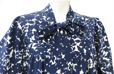 作製した ソフトなイメージのワンピースをご紹介します。ロールカラーの襟元から流れるタックでタップリとした