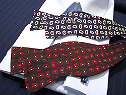 今回は、信濃屋が以前より取り扱っているネクタイメーカーのFRANCO BASSI(フランコ バッシー)とTINO COSMA(ティノ コズマ)の蝶ネクタイです。 タイ巾が5,5から6,0㎝のバタフライで、ネックサイズも46㎝位の方までお使い頂けるアジャスト可能なタイプのものになります。