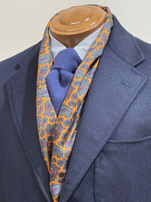 オーセンティックなペーズリー柄でソフトな色調のため、秋冬らしい