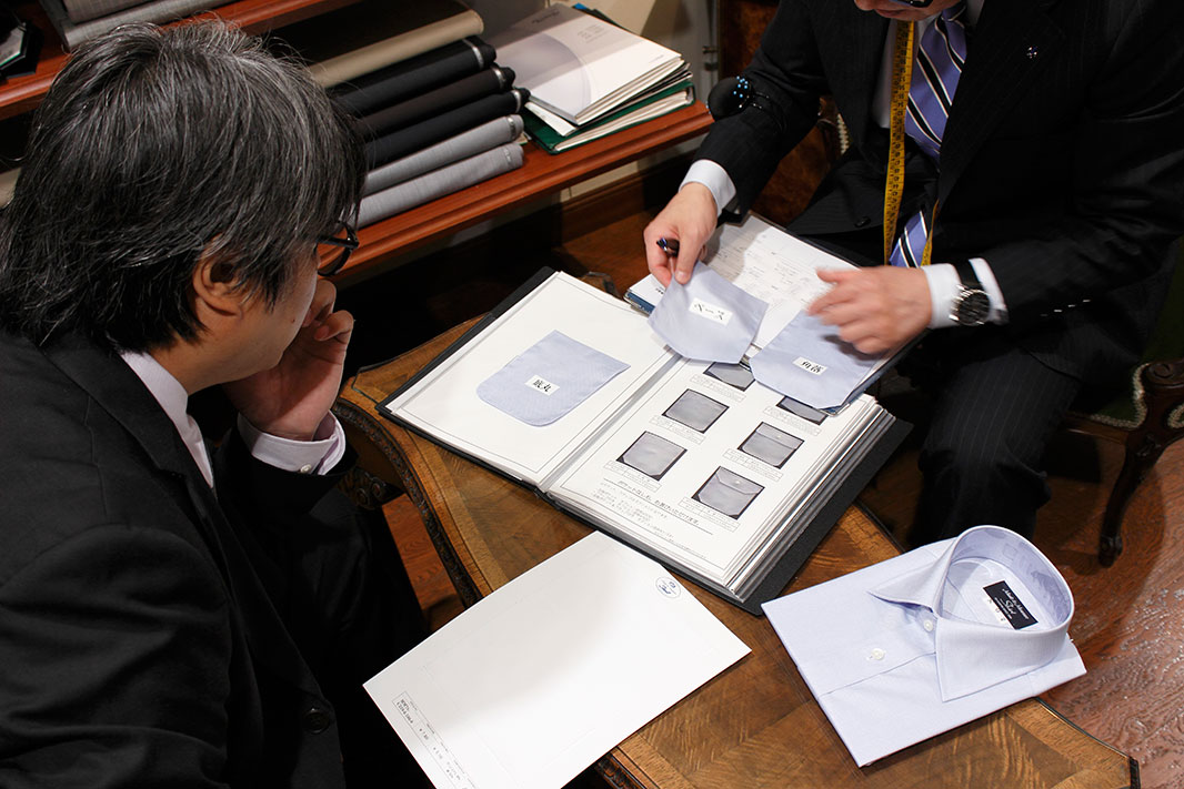 | A様: | シャツもスーツ同様に、多くの生地から選べるのはうれしいですね。 |